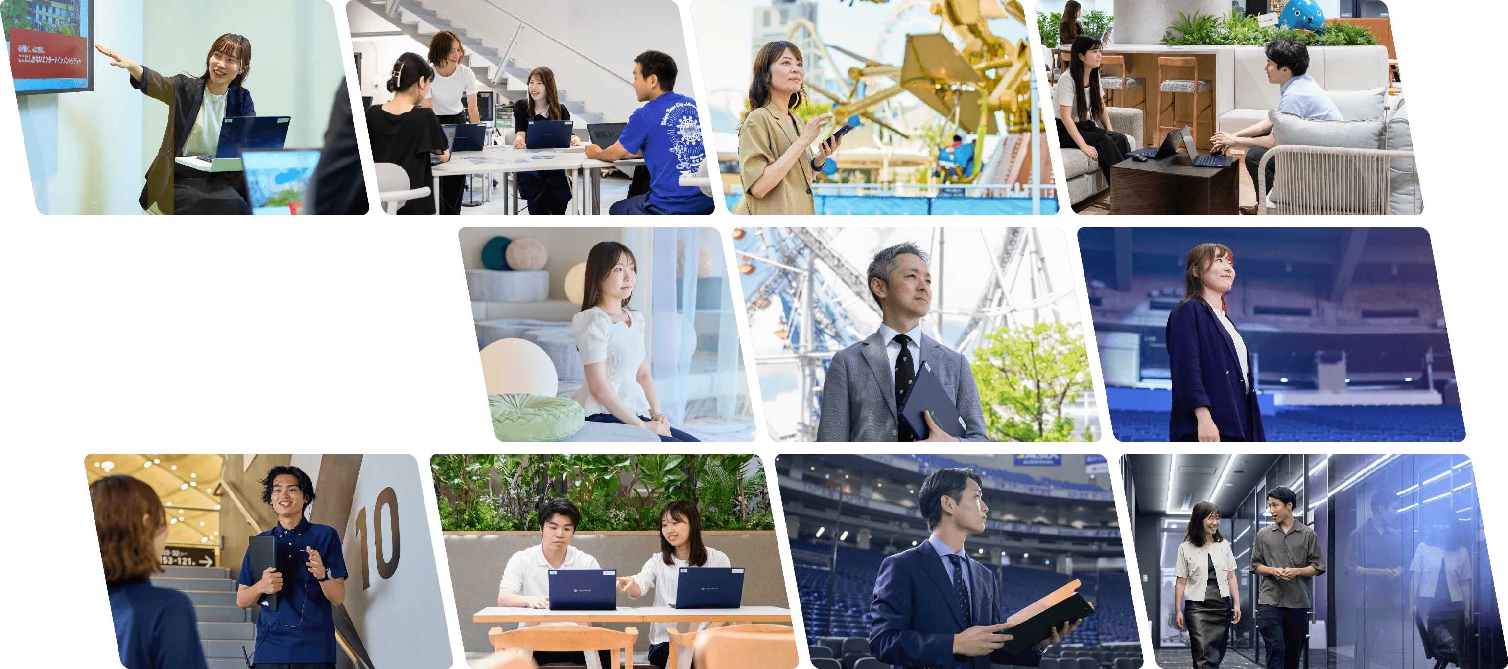 あなたの中に眠る「好き」や「面白そう」は、未来の仕事のタネかもしれません。 東京ドームには、イベントの企画やブッキング、新施設の開発、遊園地・スパ・商業施設をはじめとする各施設の運営、マーケティング、新規事業の開発に至るまで、25以上の多彩な部署が存在します。 その中から厳選した7つの部署をピックアップし、それぞれの現場で活躍する社員の“リアルな好奇心”と仕事の魅力を紹介します。 あなたの“好奇心”が「仕事」に繋がる場所は、一つとは限りません。 東京ドームで、無限に広がる活躍のフィールドを見つけてください。