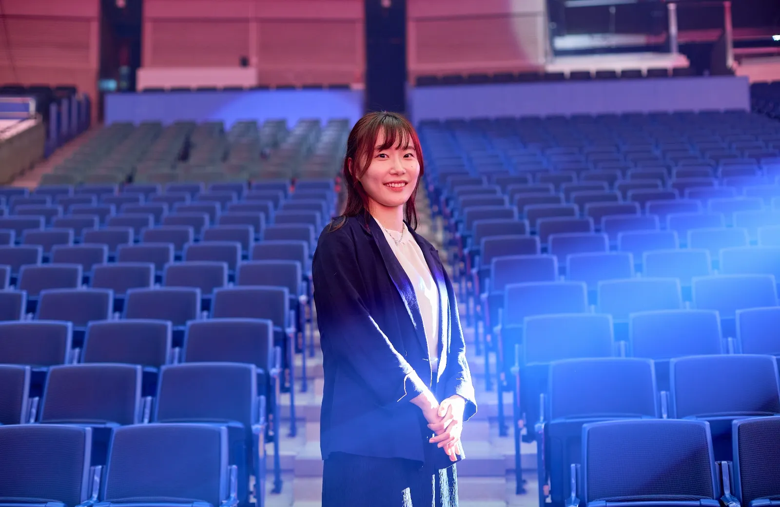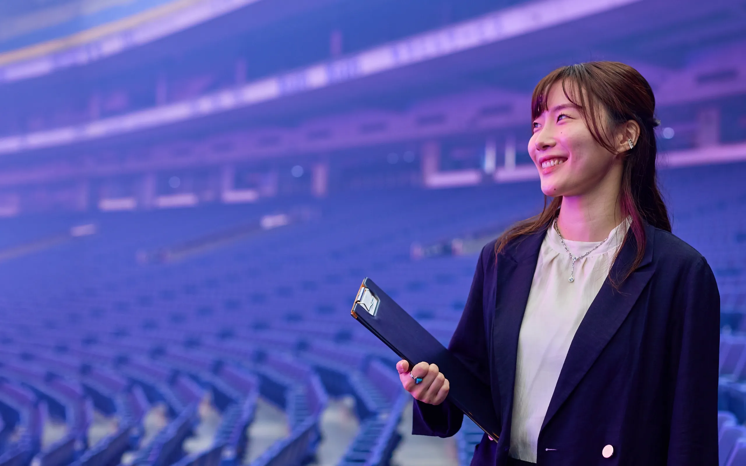 現在は興行企画部にて、主にコンサートを成功に導くためのサポートを行っています。アーティストや主催者が実現したい演出を、消防法などの規制や安全ルールに沿って実現できるよう、行政と調整したり代替案を提案したりしています。コンサート当日はお客様に安全・安心にイベントを楽しんでいただけるよう、円滑な運営を心がけています。「この日を楽しみにしてきた」という何万人ものお客様が心待ちにしている特別な瞬間に携われていることに、大きな責任感と誇らしさを感じています。