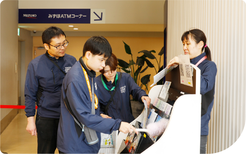 東京ドームシティは、多くの人にとって特別な時間が流れる場所です。歓声が上がる瞬間、ほっと一息つく時間、心が動く体験。 その感動は、舞台の上だけで生まれているわけではありません。誰かが整えた空間、誰かが準備した道具、誰かが丁寧に積み重ねた仕事の先に、感動は生まれています。 東京ドームウィズの仕事は、感動をつくる側ではなく、感動が自然に生まれる「土台」を支えること。派手さはなくても、確かな手応えがあり、「今日も役に立てた」と素直に思えるやりがいがあります。 人それぞれの得意や特性を活かしながら、仲間とともに働き、誰かの感動を静かに支える。それが、私たちの仕事です。