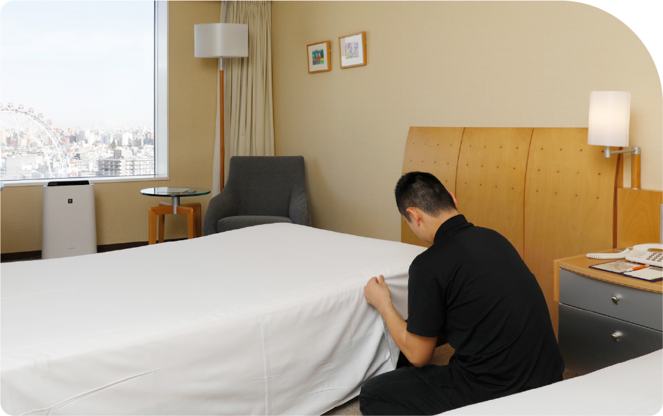 ホテル業務は、お客様が最初に触れる「空間」を整える仕事です。ベッドメイクや清掃、鏡やガラスの拭き上げなど、すべての作業に正確さと集中力が求められます。 最初は時間がかかる作業も、繰り返し経験することで確実にスピードと精度が上がっていきます。わからないことはすぐに確認し、マニュアルを見返しながら一つずつ身につけていく。 その積み重ねが、自信と成長につながります。部屋が整った瞬間の達成感や、「この空間で誰かが心地よく過ごす」という実感は、目に見えない感動を支えている証です。静かに、丁寧に、確実に。 ホテル業務は、感動の入口をつくる責任とやりがいのある仕事です。
