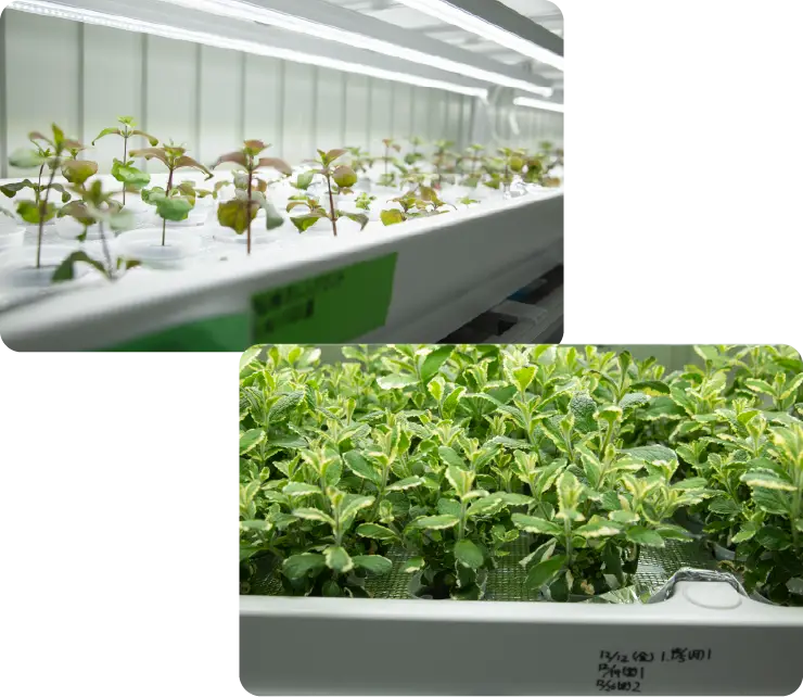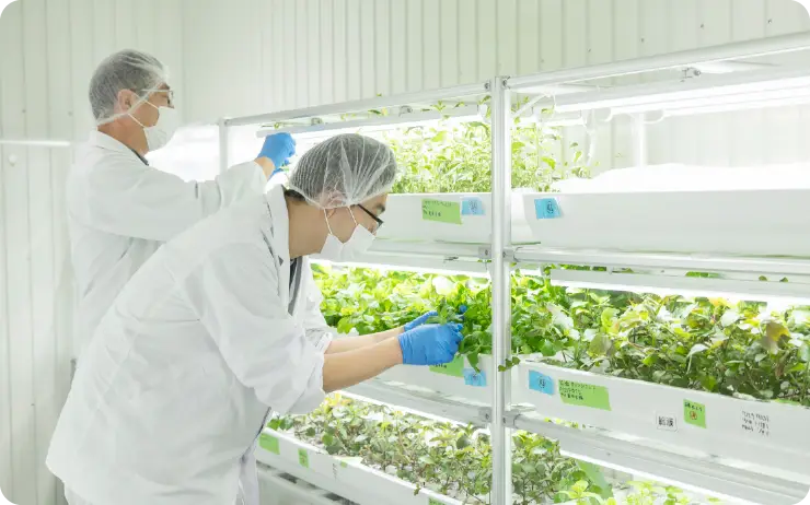 1)ハーブの栽培業務:種まき、給液、栽培トレーの洗浄、剪定、葉につく害虫の確認と駆除、栽培トレー・装置・栽培室内の清掃、ハーブの収穫